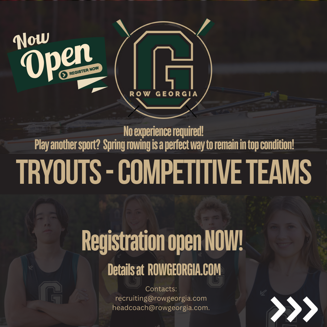 - Youth athletes 8th-12th grades wishing to Tryout for Spring Competitive Gold (Varsity) and Green (Novice) Crews. No experience necessary. Rowing is not a sport that begins in earlier ages, so you're in the right season! Due to the mental and physical strenghth and maturity required in the sport, this is a perfect transition for athletes from other sports who are ready to reach their full potential. For a younger than 8th grade student, email headcoach@rowgeorgia.com to request a written exception to participate in Tryouts.